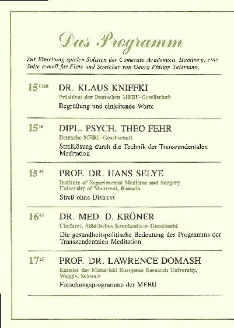 Am besten beginnt man wahrscheinlich eine Darstellung über Stress mit einem Vortrag des Begründers der modernen Stressforschung, Prof. Dr. Hans SELYE. Selye hielt diesen Vortrag auf der 1. internationalen Konferenz über Evolution und Bewußtsein am 22. Mai 1976 im Auditorium maximum der Universität Hamburg. Die Konferenz stand unter dem Leitthema “Durch Stress-Abbau zu einer gesunden Gesellschaft”. Um diese website nicht zu überladen, haben wir den Vortrag aus der Webseite heraus genommen. Sie können ihn bei uns anfragen, wir schicken ihn gerne zu.